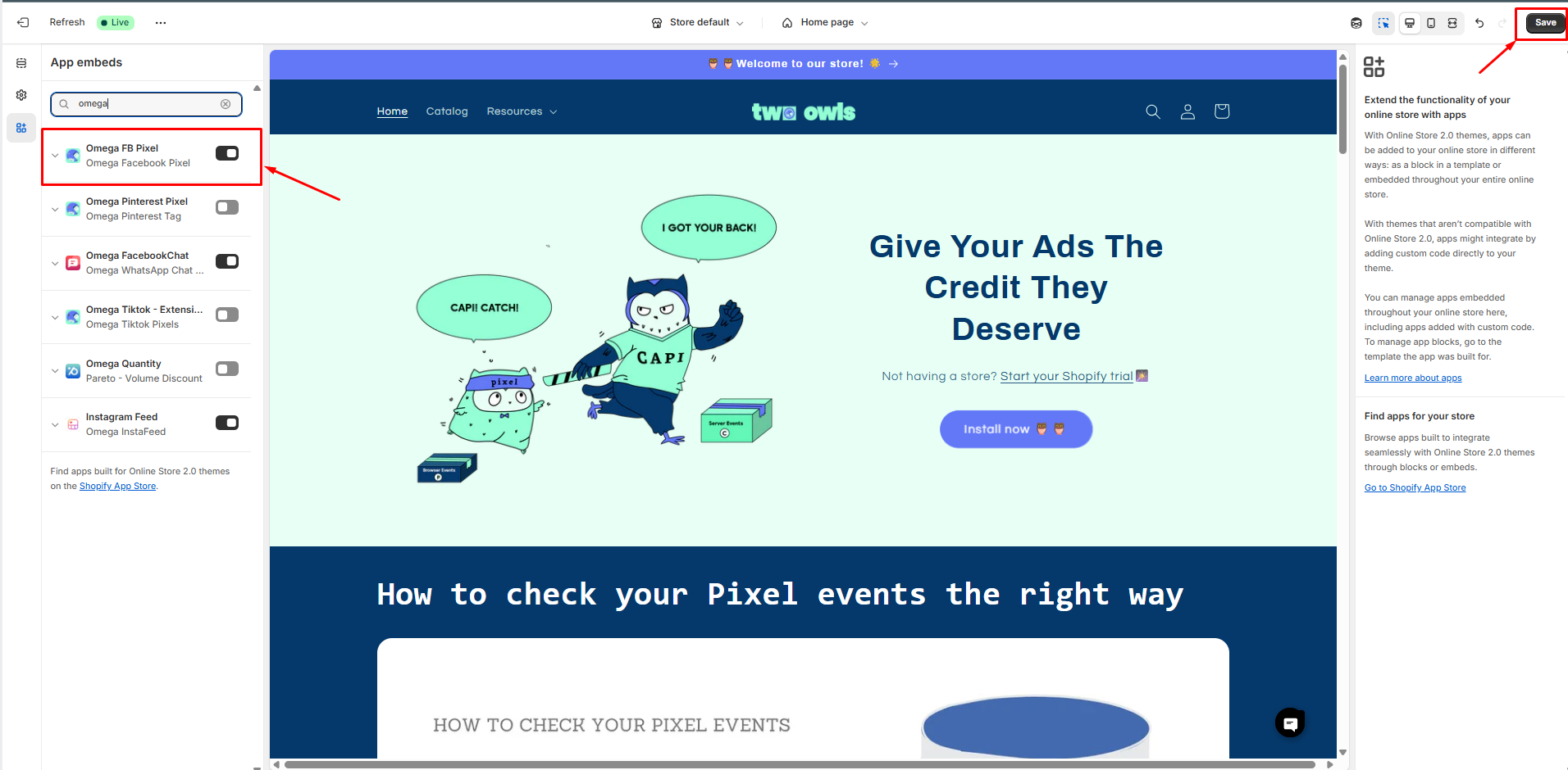### Integrate Two Owls with your Online Store via Theme app extension