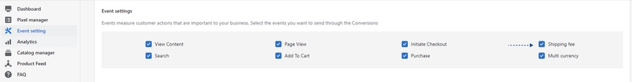 Event Overview: Track the total number of Add to Cart, Initiate Checkout, and Purchase events successfully sent to Facebook.