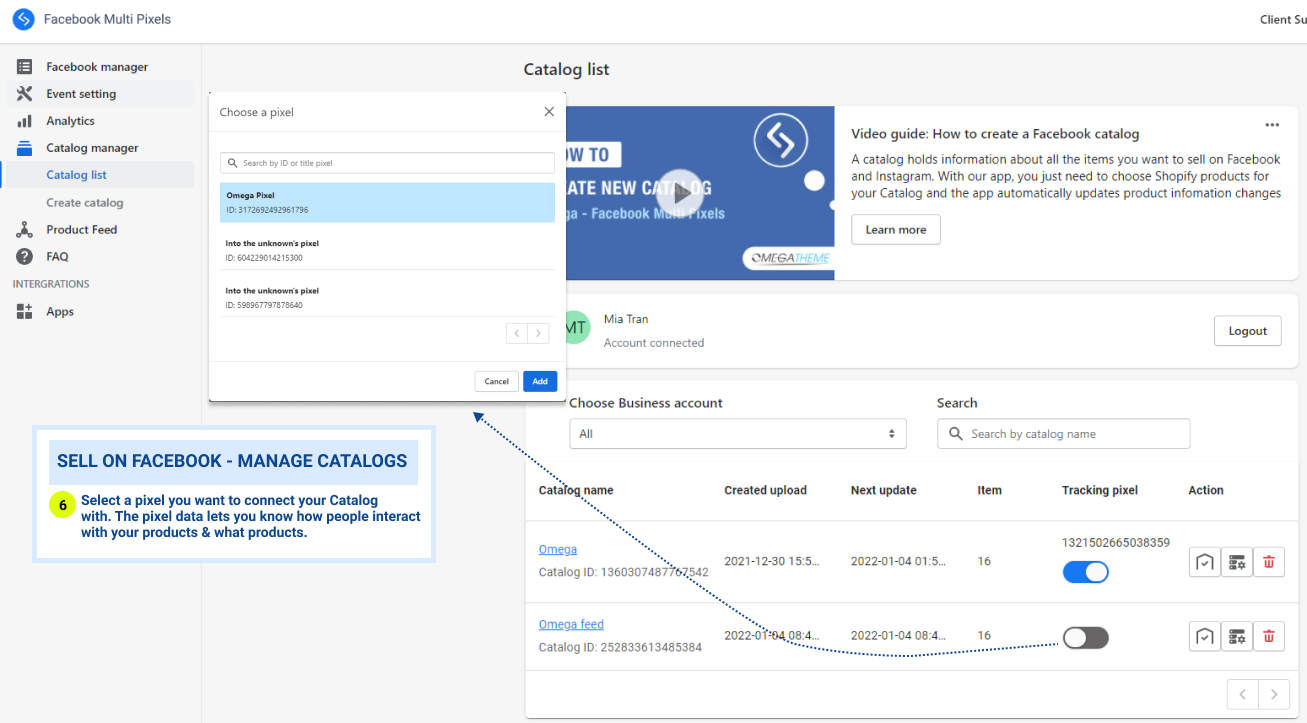 Connect the Catalog with a pixel (important)